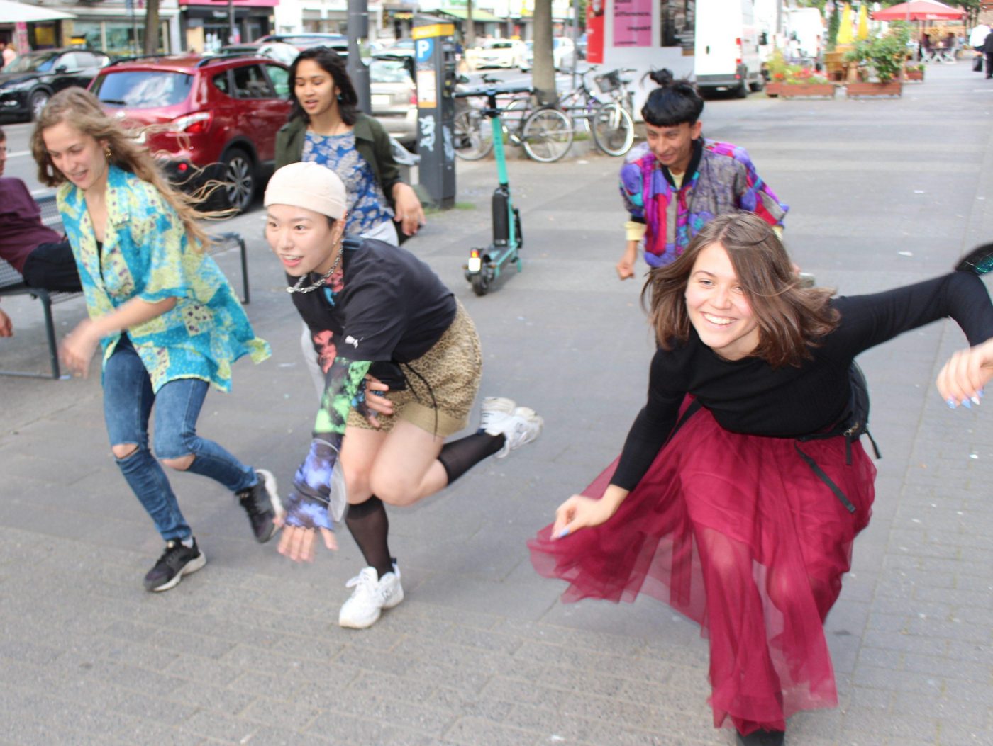 Künstlerische Leitung/Konzept/Choreographie: iSaAc Espinoza Hidrobo // Performer*innen: Ander Ballarin, Brigitte Huezo, Ceci San José, Constanza Ruiz Campusano, Charlotte Werner, Dasha Myasnikova, Demetris Vasilakis, Eithan Albay, Franz-Josef Heumannskämper, Katharina Senzenberger, Lisa Hellmich, Maria Mercedes Flores, Sarah Espinosa. Yeojin Kim