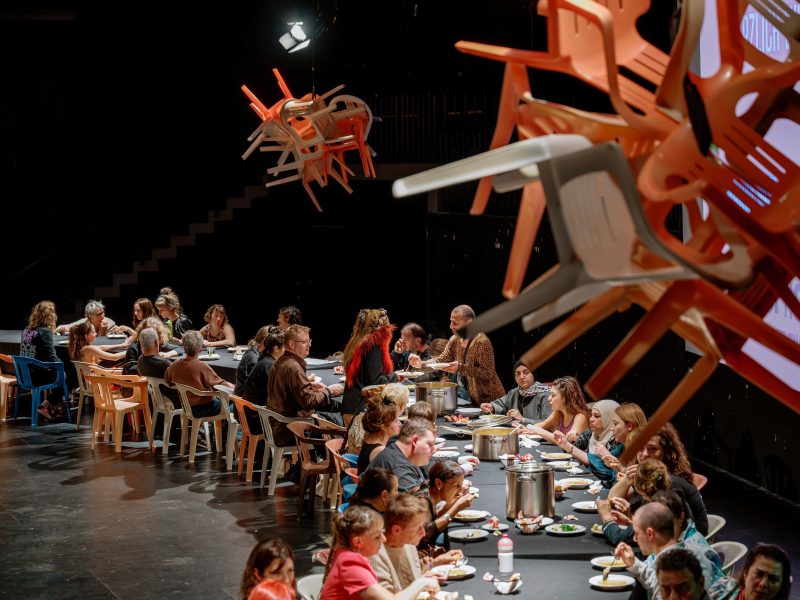 Das schrieb der US-amerikanische Journalist und Autor Michael Pollan in seinem Buch In Defense of Food: An Eater’s Manifesto. In unserem Mitmach-Panel „Tischgespräche“ versammeln sich die Besucher*innen in verschiedenen Rollen um Stehtische zum gemeinsamen Essen. Wie viel unserer Identität ist es, Kunstschaffende*r oder Kunstförder*in zu sein, Veranstalter*in und/oder Besucher*in – oder auch Ringlokschuppen-Urgestein? Wie blicken wir auf die furchteinflößenden Entwicklungen unserer Gesellschaft(en)? Welche Utopien müssen wir entwickeln? Dabei lebt der Raum, formiert sich immer wieder neu, und jede neue Runde bringt anderen Austausch und überraschende Begegnungen. Jede*r entscheidet selbst, wie aktiv er/sie/they sich einbringt, moderiert, zuhört oder diskutiert. Persönliches trifft auf Politisches – bei gutem Essen.