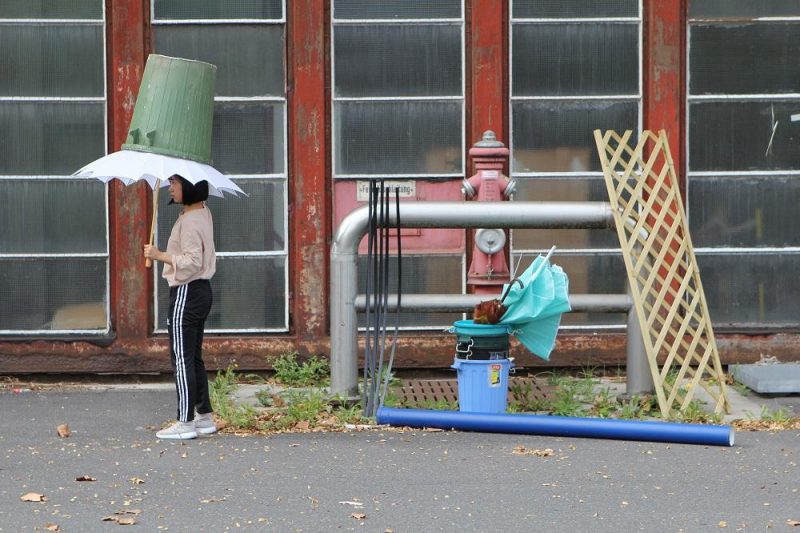 People meet on furniture, car doors and building materials, move them and are moved by them. Everyday materials are converted into walls and shields. Formations and constructions emerge that change the public space. (The paragraph for the website)
